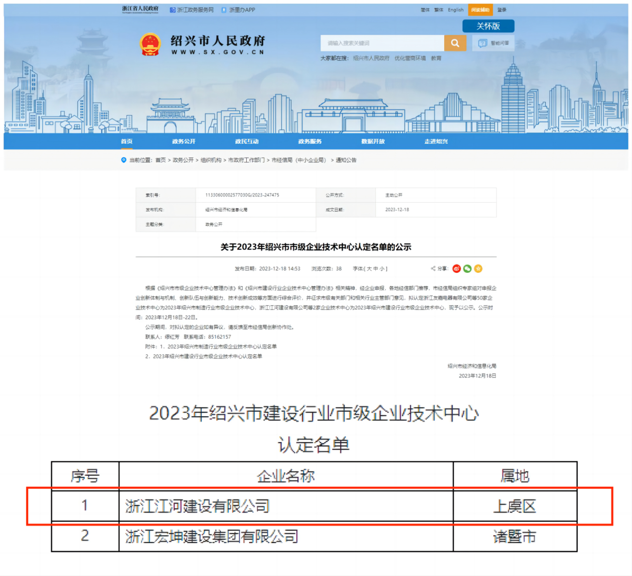 12月18日,紹興市經濟和信息化局發布《關于2023年紹興市市級企業技術中心認定名單的公示》,其中浙...