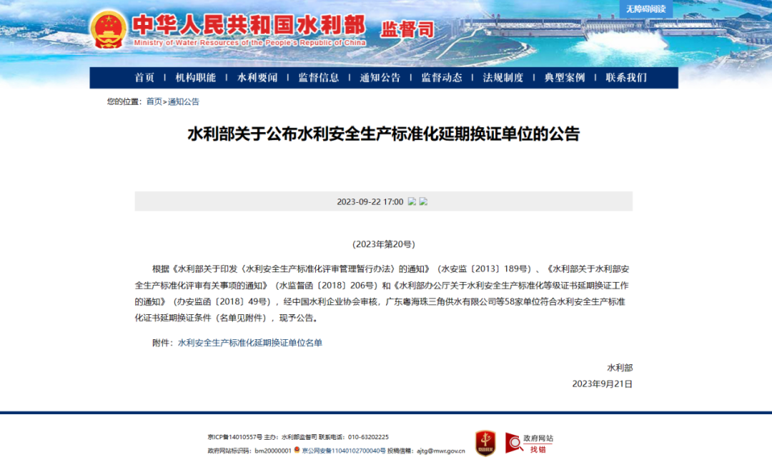 近日,按照《水利部辦公廳關于水利安全生產標準化等級證書延期換證工作的通知》的文件要求,經中國水利企業...
