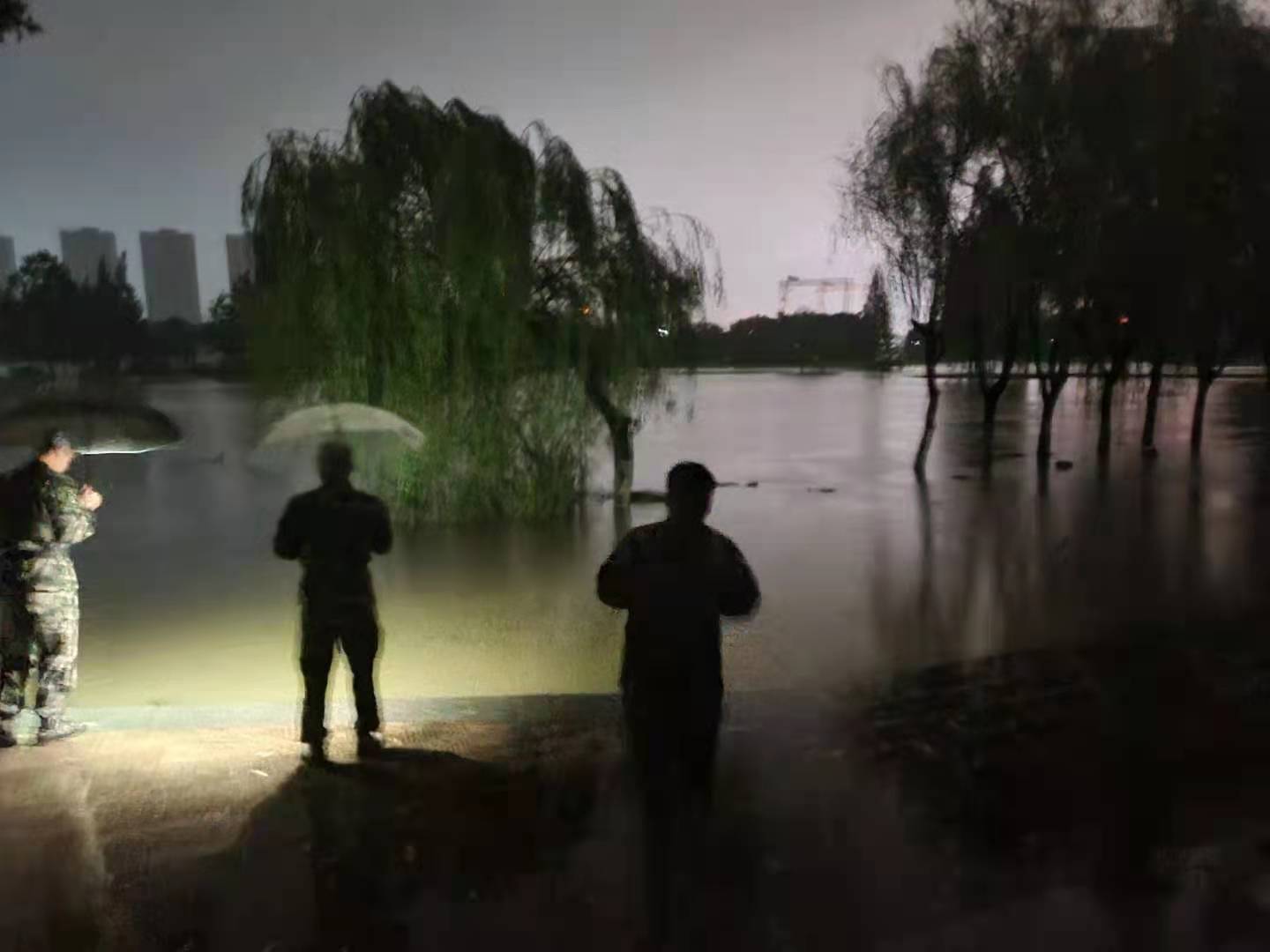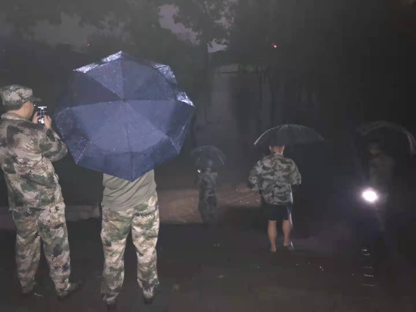 在公司的統籌下,民兵連組建應急小隊,全力做好巡視江堤、應急處置、搶險救災等工作。很多同志不顧感冒,身披雨衣、撐著雨具,奔走在江堤一線。