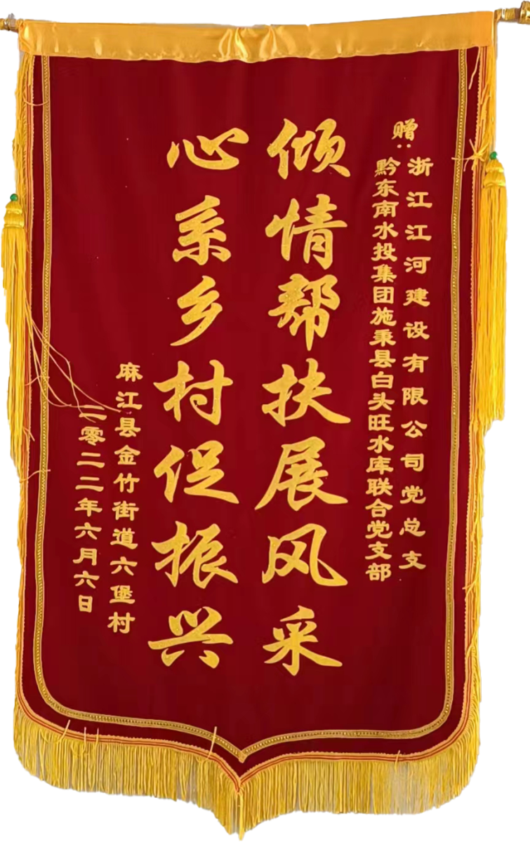 日前,浙江江河建設有限公司黨總支收到一面鐫有“傾情幫扶展風采、心系鄉村促振興”的錦旗,這是貴州省麻江縣金竹街道六堡村為感謝江河建設對鄉村脫貧攻堅伸出援手,精準幫扶顯露真情送來的。自江河建設黨總支施秉白頭旺水庫工程聯合黨支部成立以來,始終牢固樹立“圍繞建設抓黨建、抓好黨建促建設”的理念,積極通過抓黨建推進項目建設,促進黨建與生產經營深度融合。