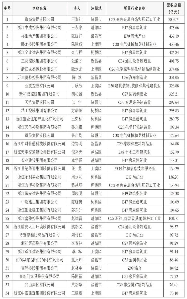 根據全國工商聯上規模民營企業調研方案,紹興市工商聯在企業自行申報的基礎上,以2021年營業收入總額為標準,排序出“2022紹興市民營企業100強名單”,特予公布。