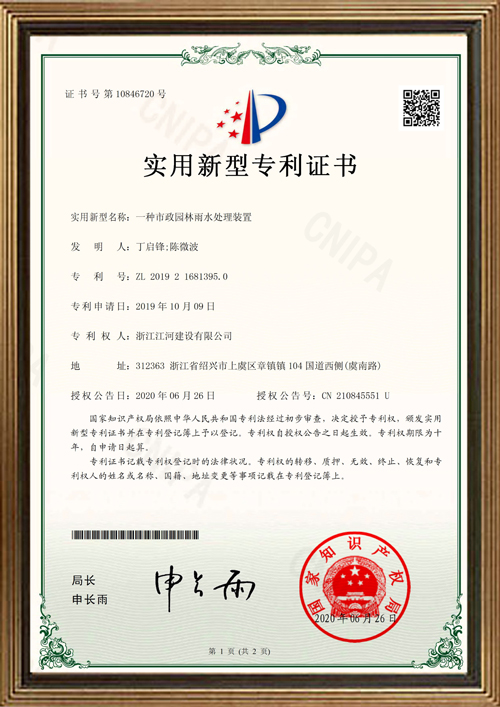日前,公司榮獲國家知識產權局10項實用新型專利,其中涉及水利水電工程5項、市政公用工程5項。