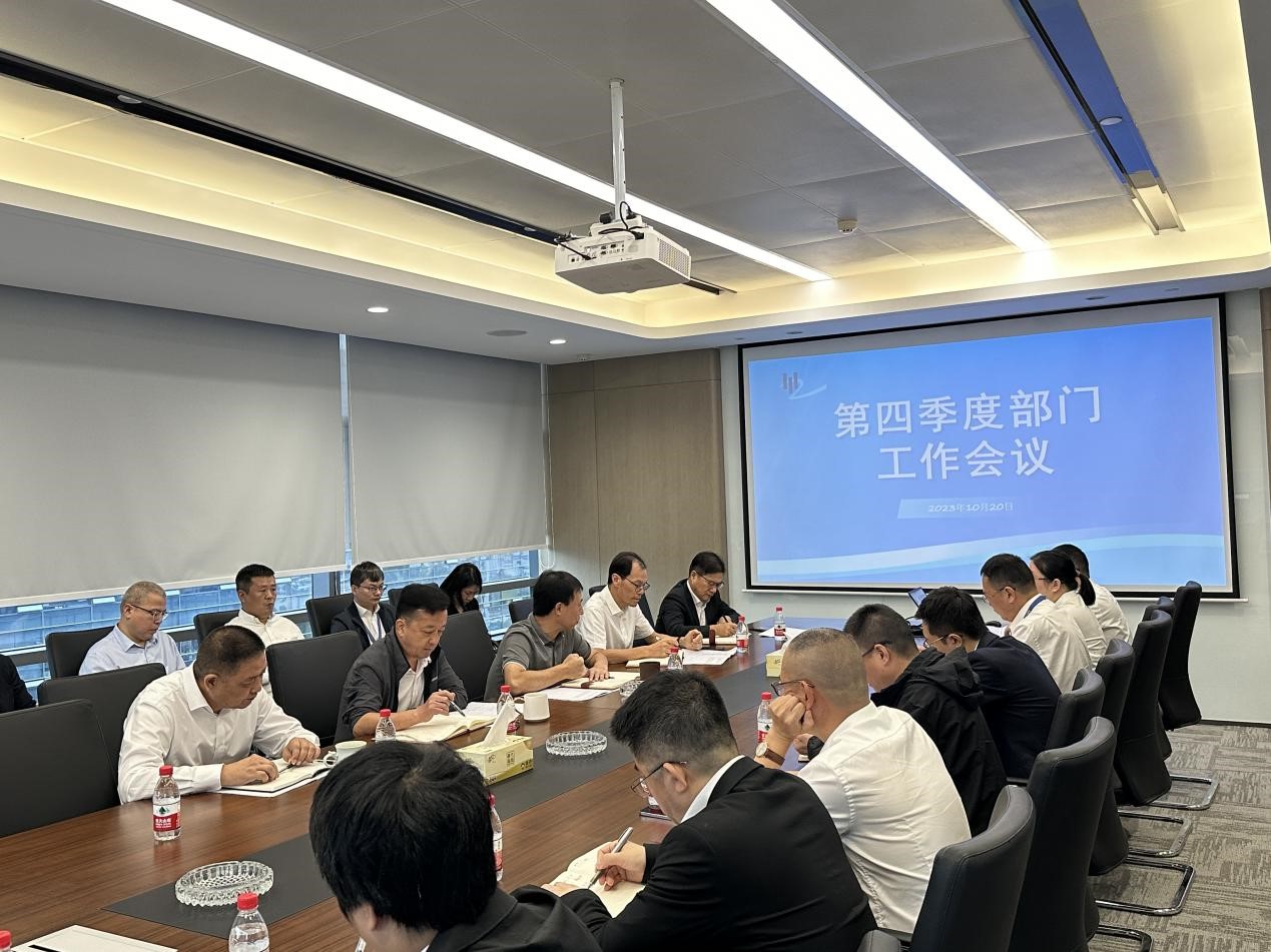 為進一步統一思想,明確各部門工作任務和思路,10月20日,公司召開2023年第四季度工作會議。會議通報了前三季度的經營指標完成情況,明確了四季度各部門工作重點,安排部署了公司四季度經營工作任務。公司董事長袁偉忠、總裁陳宋江,各部門相關負責人出席會議。