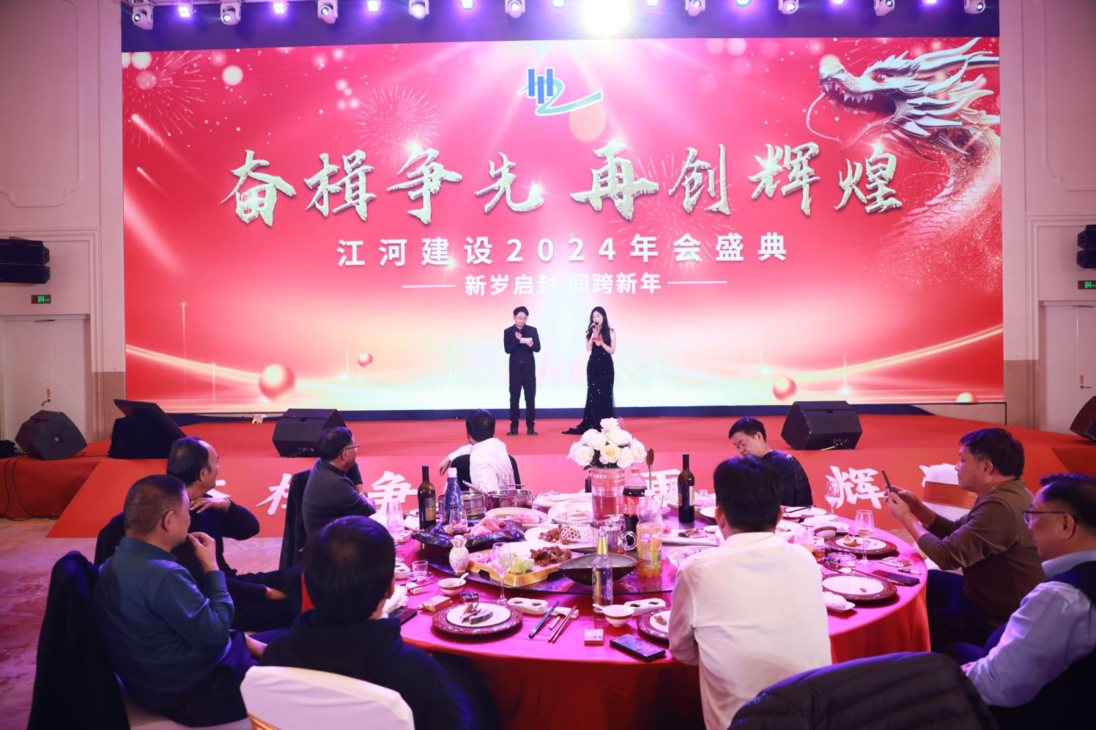 華燈初上,菁英云集。與君共襄,年終盛舉。2月21日晚上,浙江江河建設有限公司2024年新春年會在白金漢爵大酒店榮耀召開,公司總部全體員工、分子公司負責人、項目部代表等200余人歡聚一堂。在主持人熱情洋溢的開場祝福中,年會拉開了序幕。