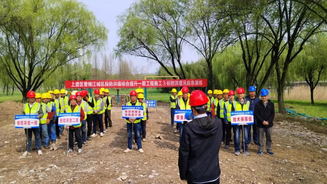 “上虞區曹娥江城區段防洪堤綜合提升一期工程施工3標”和“紹興市上虞區海塘安瀾工程”兩個項目搶占先機,在省法定入汛時間之前,分別于3月27日和4月12日對各自項目的度汛方案進行了現場演練,各組參演人員積極響應,穩定有序,充分發揮出各應急小組的作用,整套演練過程中沒有出現較大紕漏,通過演練總結,充分體現出各項目防汛應急演練方案的可操作性、合理性,指揮決策的準確性、規范性,防汛調度的靈活性和科學性。