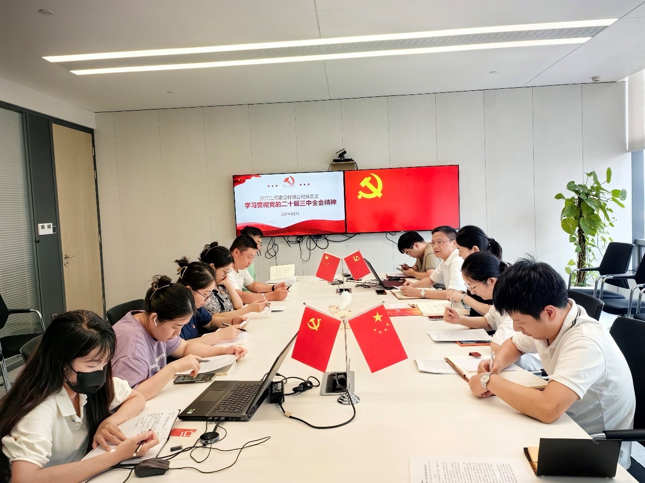 近日,浙江江河建設有限公司黨總支開展8月份主題黨日活動,主題為“學習貫徹黨的二十屆三中全會精神”專題學習會。會議由黨支部書記主持,全體黨員、預備黨員、流動黨員、入黨積極分子等通過“線上+線下”參加活動,部分黨員、職工群眾以微群收看資料的方式參加活動。