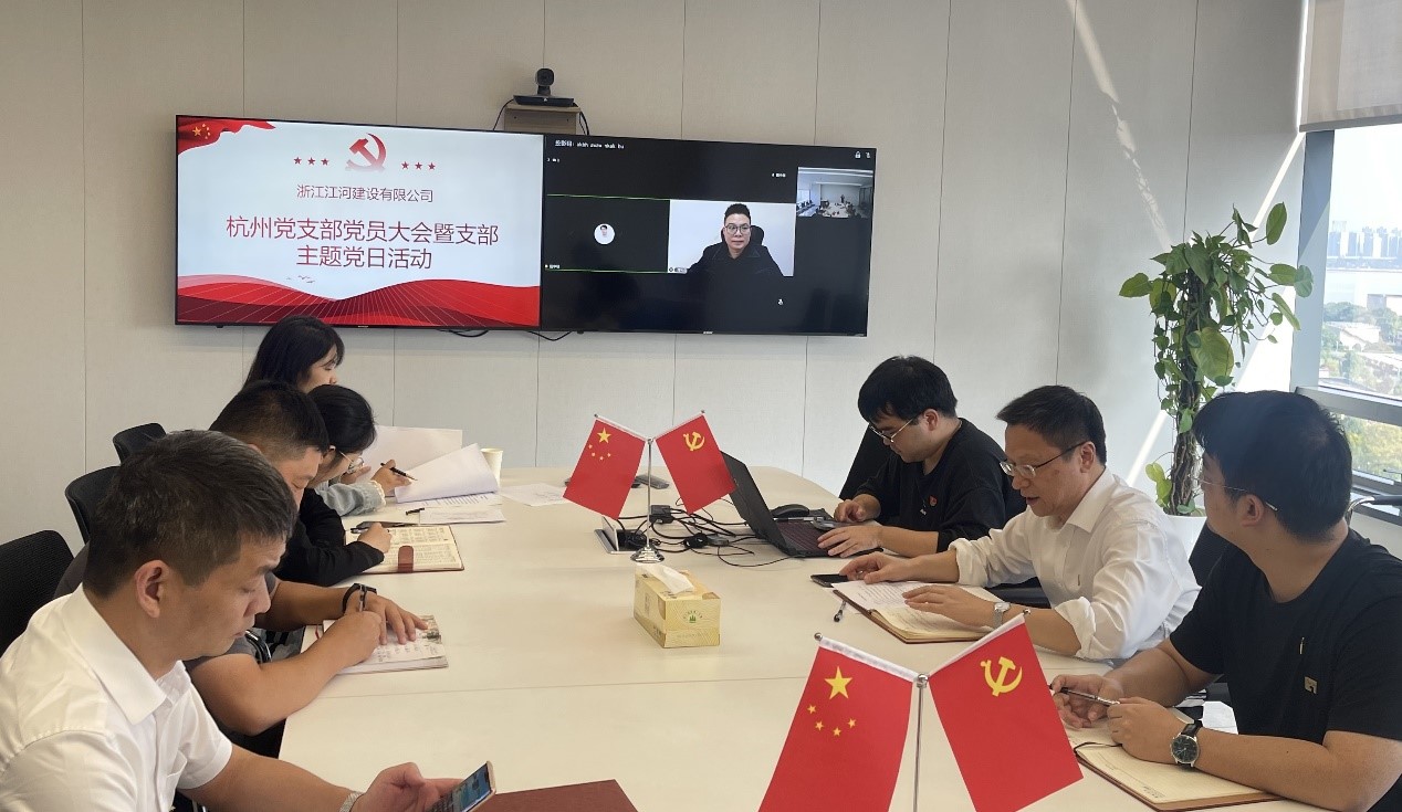 10月21日下午,浙江江河建設有限公司公司黨總支在杭州總部開展10月份主題黨日活動暨杭州黨支部黨員大會,全體黨員、預備黨員等通過“線上+線下”參加會議和活動。