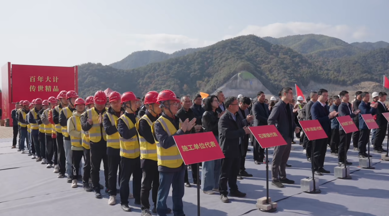 2025年12月10日,我司中標的嵊州市三溪水庫工程舉行截流暨大壩主體工程開工儀式。標志著這個省級“千項萬億”重大項目前期工作取得重大勝利,大壩主體正式進入施工階段,紹興市副市長羅延發、省水利廳二級巡視員宣偉麗、嵊州市委書記裘建勇,市長潘超英、紹興市水利局局長等參加開工儀式,公司董事長袁偉忠也親臨現場。