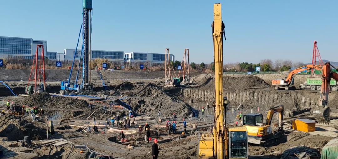江河建設牽頭承建的紹興市上虞區東關片區澇區治理-五甲渡閘站建設工程,是虞紹平原東關片區防洪排澇的骨干工程,閘站基礎深基坑支撐梁施工是保障后續基坑安全、推進主體工程建設的關鍵節點,直接影響項目的整體推進。春節前夕,工地依然干得熱火朝天,為攻克這一重要施工節點,確保工程按計劃推進,項目部緊急調集精兵強將組建攻堅小組,嚴格遵循“先撐后挖、分層開挖”的施工原則,搶時間、抓進度、保質量。