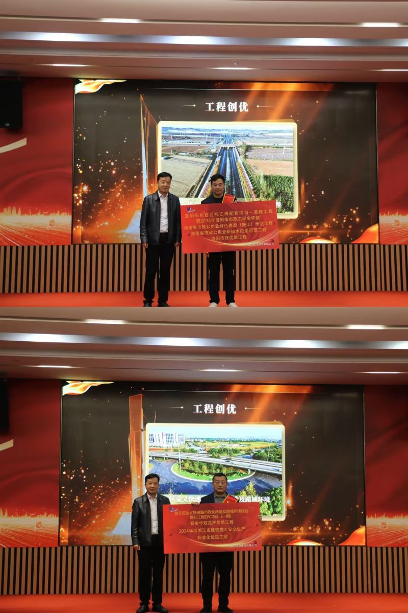 會議表彰獎勵了2025年度公司涌現(xiàn)出的各類先進(jìn)團(tuán)隊、先進(jìn)項目經(jīng)理和先進(jìn)個人,號召全體員工在2026年見賢思齊,策馬揚鞭,形成“萬馬奔騰”的爭先局面,再立新功。對2025年工程創(chuàng)優(yōu)團(tuán)隊——洛陽石化百萬噸乙烯配套項目—道路工程項目部和金東區(qū)金義快速路市政化改造及路域環(huán)境綜合提升工程EPC項目等項目獎勵。為落實今年的工作任務(wù),會議安排了各部門、中心及營銷團(tuán)隊代表現(xiàn)場簽訂責(zé)任書,明確考核目標(biāo)。